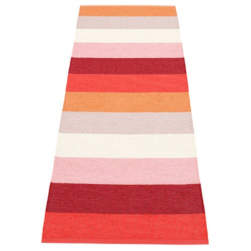 Et godt tip til indretning udendørs er at skabe en hyggelig atmosfære. En nem måde at øge hyggefaktoren i din udestue eller på terrassen er at købe en udendørs måtte. Tæpper fra Pappelina er perfekte til udendørs brug og til terrassen. Tæpperne består af 90 % plastfoliebånd og 10 % varptråd (polyester). Materialevalget giver et udendørs tæppe, der tørrer utroligt hurtigt, samtidig med at det har en god farveægthed og kræver minimal vedligeholdelse.